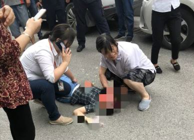 Menina de dez anos gravemente ferida por um objeto jogado de um prédio próximo em Nanjing na quarta-feira, 19 de junho, 2019. [Foto: thepaper.cn]