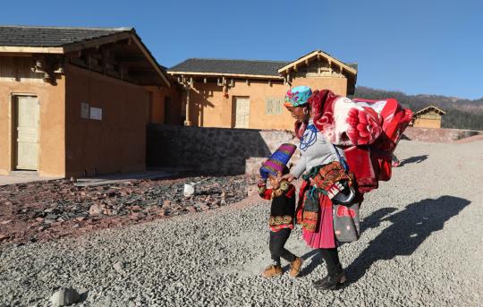 Pessoas do grupo étnico Yi mudam-se para suas novas casas na aldeia de Sanhe da província de Sichuan, a 24 de fevereiro, 2019.(Foto: Xinhua)