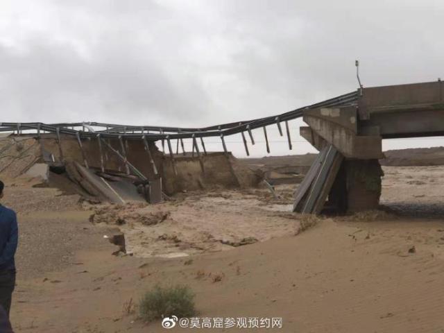As fortes chuvas provocaram o transbordamento do rio Daquan, que corre em frente às Grutas de Mogao. A distancia mais curta entre o rio e o patrim?nio é de cerca de 100 metros.