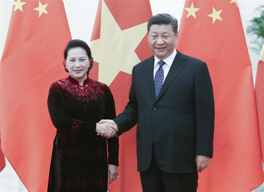Beijing, 13 jul (Xinhua) -- O presidente chinês, Xi Jinping, se reuniu na sexta-feira com a presidente da Assembleia Nacional do Vietn?, Nguyen Thi Kim Ngan, de visita em Beijing, pedindo aos dois países que promovam a amizade e aprofundem a coopera??o para elevar os la?os bilaterais a um novo patamar.