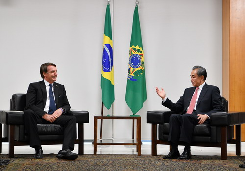 Em 25 de julho, 2019, o presidente brasileiro Jair Bolsonaro reuniu-se com o Conselheiro de Estado e Ministro das Rela??es Exteriores da China, Wang Yi, no Palácio do Planalto em Brasília. O vice-presidente Hamilton Mour?o também compareceu ao encontro.