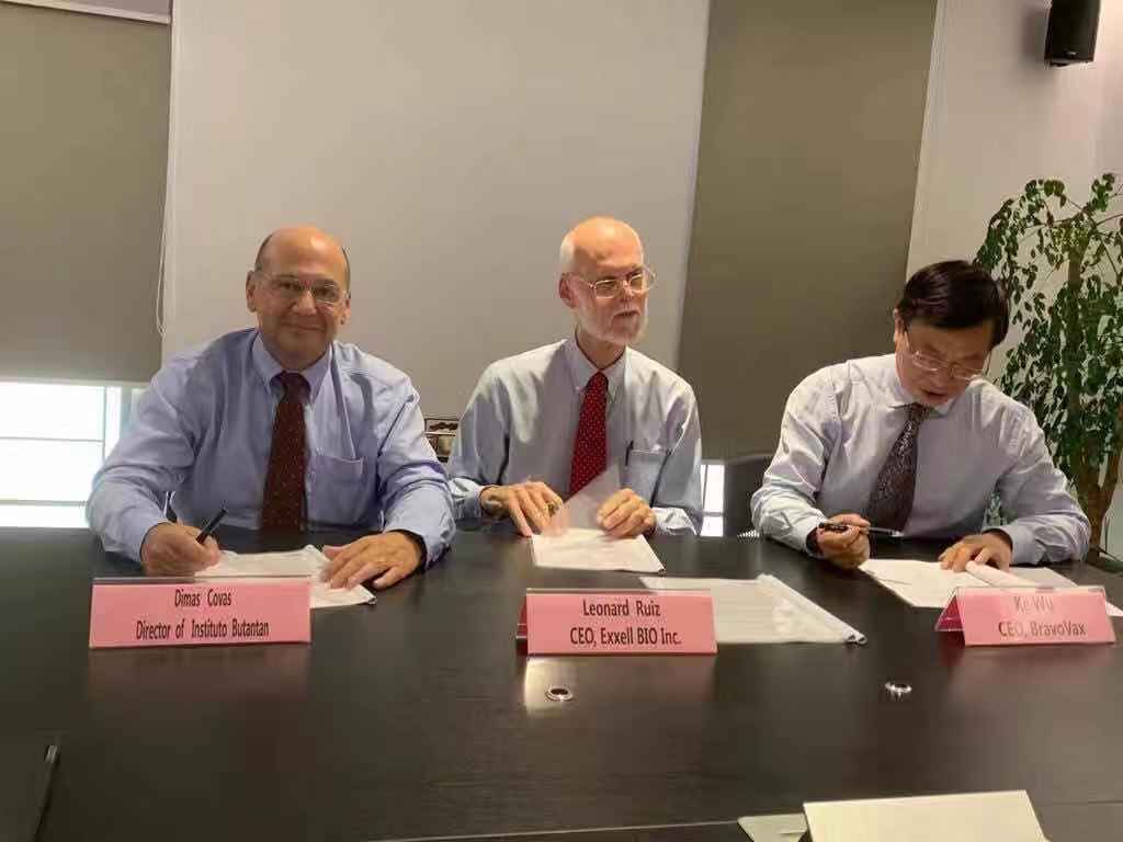 Durante a miss?o para a China promovida pelo governo de S?o Paulo, estado brasileiro, o Intituto Butantan assinou um acordo tripartiste com o intuito de desenvolver a vacina pentavalente de rotavírus com a empresa chinesa BravoVax e a norte-americana Exxell Bio, segundo nota de imprensa.