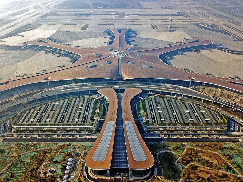 Localizado a 46km ao sul do centro de Beijing, será o maior aeroporto de terminal único do mundo e deverá receber mais de 100 milh?es de passageiros por ano.