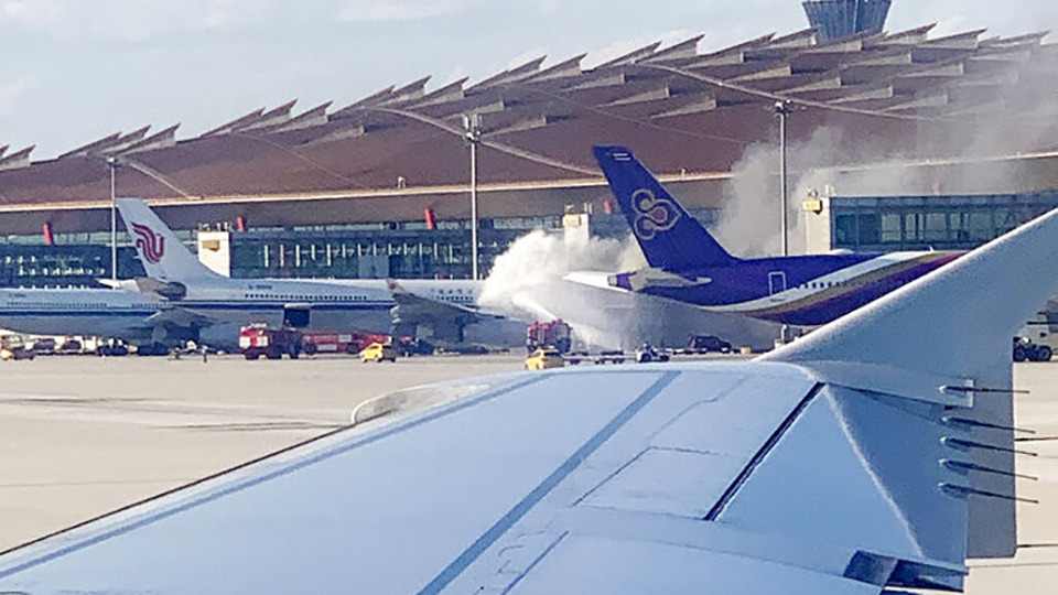 Na ter?a-feira (27), uma nuvem de fuma?a saiu de um avi?o da Air China no aeroporto de Beijing, quando os passageiros estavam come?ando a embarcar.