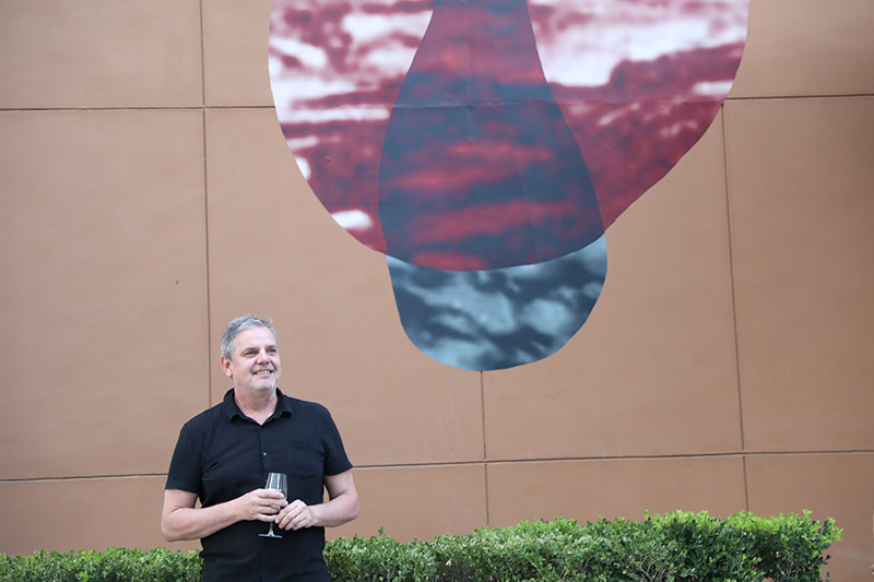 O artista brasileiro Caio Reisewitz posa em frente à sua instala??o artística