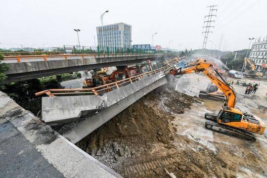 O colapso ocorreu por volta das 6:10 da noite de quinta-feira ao longo da Estrada Nacional 312 quando a ponte tombou para um lado dos lados. Uma investiga??o preliminar sugere que o colapso foi causado por caminh?es sobrecarregados, afirmou o governo municipal de Wuxi por uma declara??o.