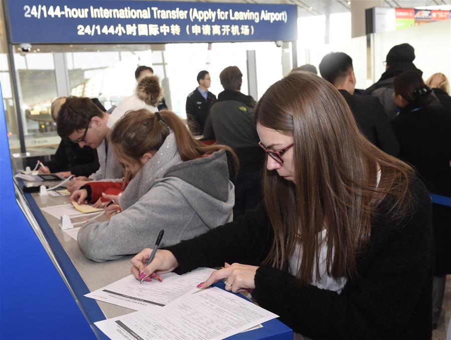 Passageiros realizam procedimento de transferência internacional de 24 para 144 horas no terminal 3 do Aeroporto Internacional de Beijing, 28 de dezembro, 2017. [Foto/Xinhua]
