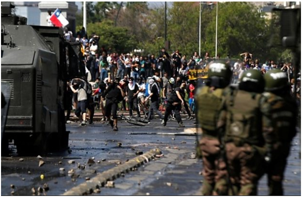 Os protestos, desencadeados por aumentos de tarifas de transporte público, come?aram na capital e se espalharam para outras regi?es do país. O estado de emergência está em vigor na capital e outras regi?es de Coquimbo, Valparaíso e Metropolitana.