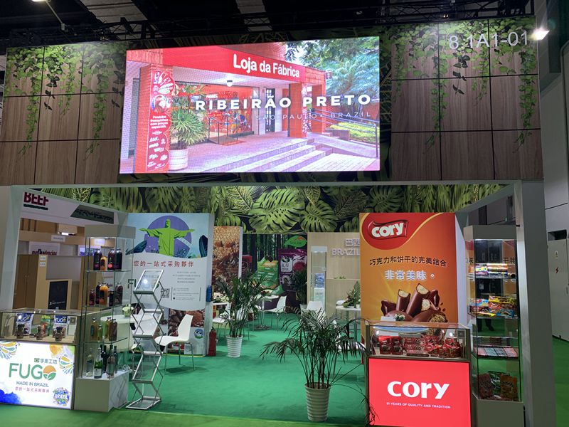 Na zona de exposi??o de alimentos e produtos agrícolas da CIIE, há uma outra área com concentra??o de empresas brasileiras. Um estande que abriga diversas empresas brasileiras e com decora??es de matas tropicais estava lotado com os visitantes. Lá se exibe própolis, café e lanches, além de carne bovina. Segundo a empresa coordenadora que organizou essas empresas para participar da CIIE, apesar de grande distancia geográfica entre a China e o Brasil, as empresas brasileiras ainda têm vontade de vir à China para explorar o mercado chinês.