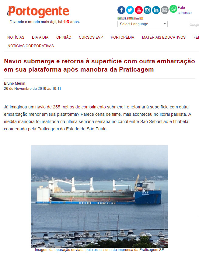 No dia 26 de novembro, o site Portogente publicou uma notícia, sobre uma manobra realizada pelo navio semi-submersível chinês "Xin Guang Hua" no canal entre S?o Sebasti?o e Ilhabela.