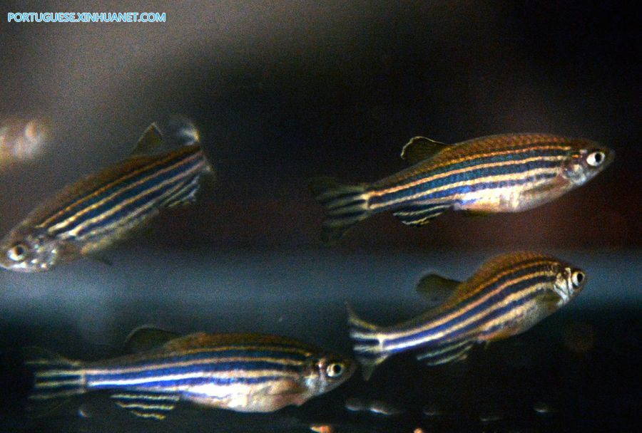 Foto de arquivo mostra alguns peixes-zebras em um instituto de pesquisa de biologia local em Shandong, no leste da China.