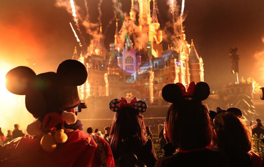 Turistas com toucas de Mickey visitam o Shanghai Disney Resort em Shanghai, no leste da China, em 18 de novembro de 2018.