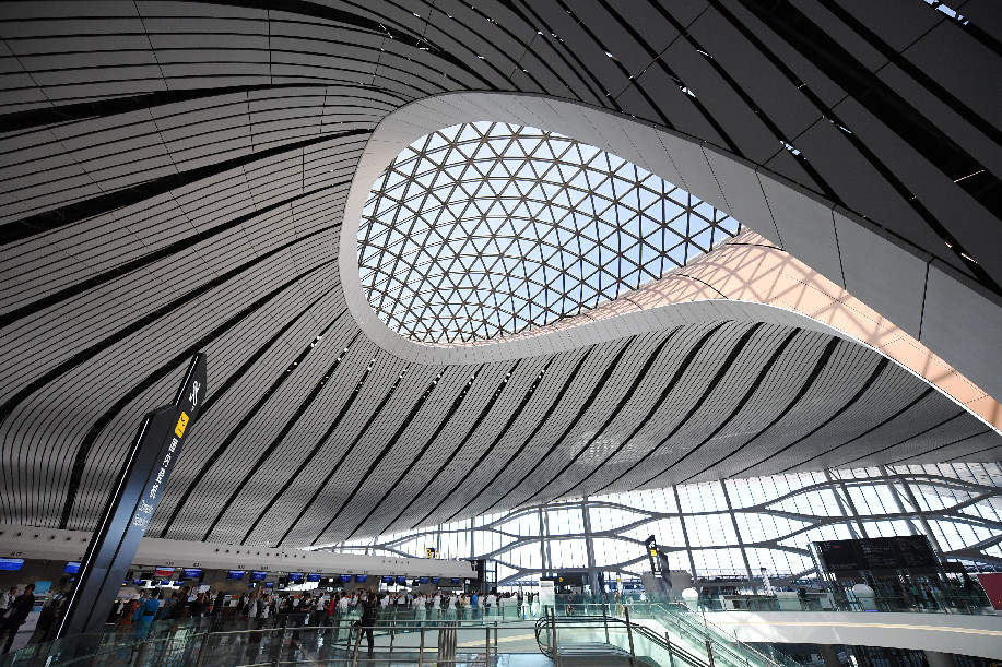 A foto tirada em 25 de setembro de 2019 mostra o sal?o de terminais do Aeroporto Internacional Daxing de Beijing, capital da China.