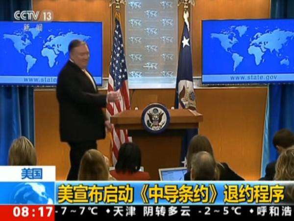 A 2 de agosto, apesar da oposi??o da comunidade internacional, os EUA insistiram em abandonar o Tratado de For?as Nucleares de Alcance Intermediário, o qual foi oficialmente terminado. No início do ano, os EUA anunciaram que haviam suspendido as suas obriga??es sob o referido tratado, e que haviam iniciado os procedimentos de retirada. Subsequentemente, o presidente russo, Vladimir Putin, assinou uma ordem para a suspens?o russa do mesmo. Após abandonarem o tratado, os EUA dispararam sucessivamente vários mísseis cruzeiro e balísticos de médio alcance. Estas medidas fizeram aumentar a preocupa??o global sobre uma nova corrida às armas. O unilateralismo deixou o mundo numa situa??o mais complexa, e os fatores de instabilidade e incerteza aumentaram significativamente.