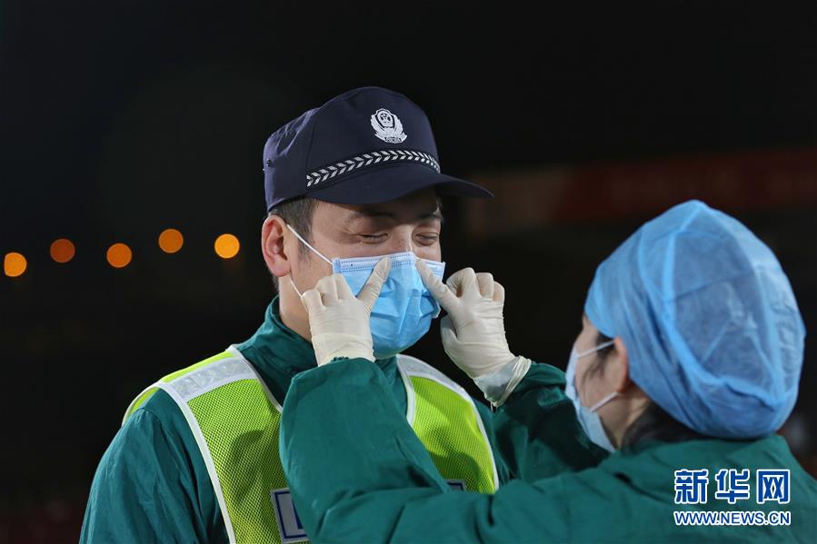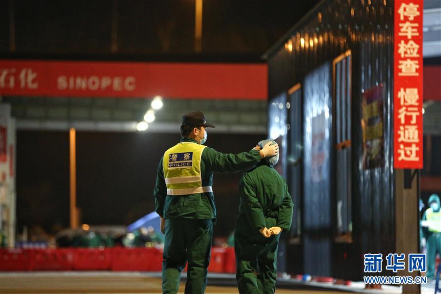 Yang Chenhua (esquerda) e Fang Mengxia usam o seu turno para falar no ponto de controle anti-epidemias da via expressa de Zhoushan, na ponte marítima da província de Zhejiang, na noite de 10 de fevereiro. Yang Chenhua, um policial do escritório de Dinghai, do Departamento de Seguran?a Pública Zhoushan, tem se engajado na preven??o de epidemias desde que a batalha de preven??o e controle de pneumonia causada pelo Covid-19 come?ou.