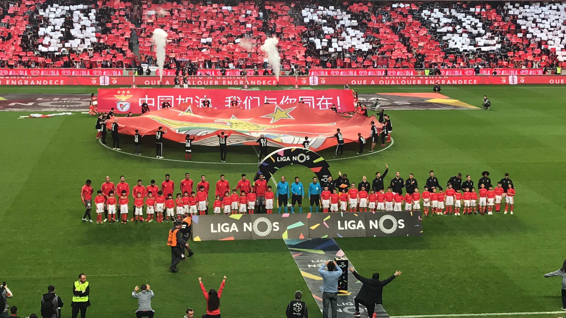 O Sport Lisboa e Benfica, apresentou ontem (15) um slogan em chinês com os dizeres “For?a China, estamos juntos!”, antes de um jogo em casa da 21.a jornada da Liga NOS, contra o Sporting Clube de Braga, manifestando o apoio à China na luta contra a epidemia causada pelo novo coronavírus.