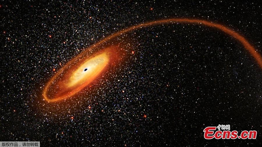 A foto obtida em 2 de abril de 2020 mostra um homicídio cósmico em a??o. Uma estrela rebelde está sendo destruída pela intensa atra??o gravitacional de um buraco negro que contém dezenas de milhares de massas solares.