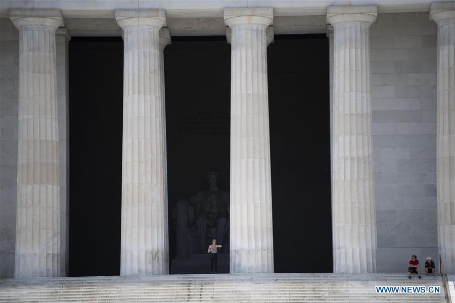 Pessoas descansam no Lincoln Memorial em Washington D.C.