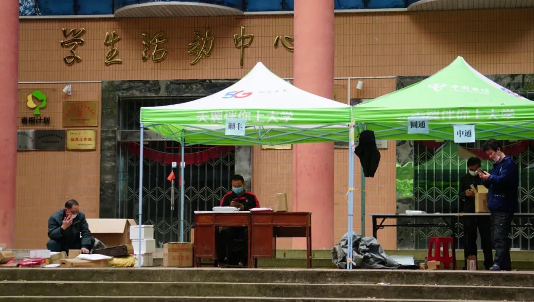 Entregadores podem entrar na Universidade Normal da China Central com códigos QR de saúde e certificados relacionados.