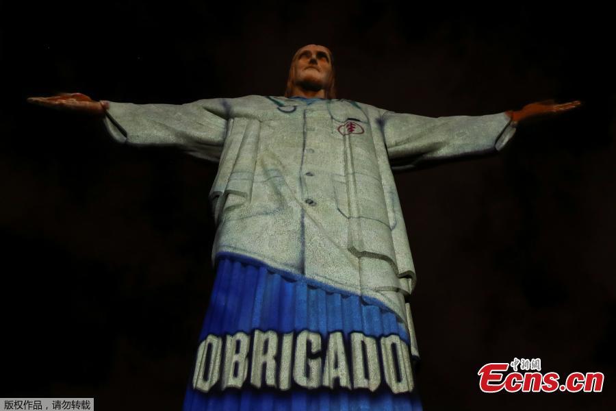 Cristo Redentor veste jaleco em agradecimento aos profissionais da saúde