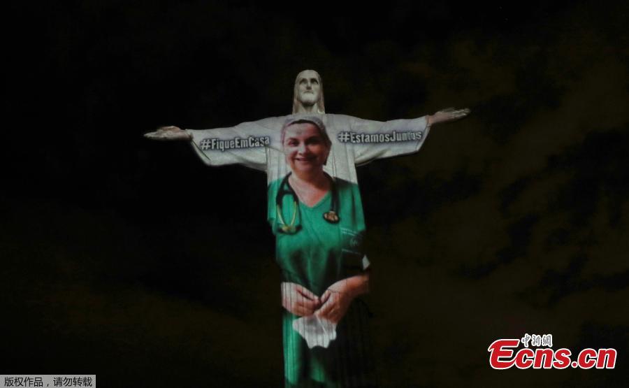 Segundo noticiou a TV Globo do Brasil no domingo (12), a estátua do Cristo Redentor no alto do morro do Corcovado, Rio de Janeiro, "vestiu" um jaleco em homenagem aos profissionais da saúde que est?o na linha de frente do combate à Covid-19.