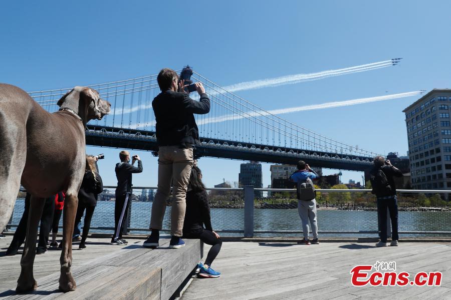 As for?as aéreas homenagearam aos profissionais na linha de frente da Covid-19 com os voos de forma??o sobre Nova York, Trenton e Filadélfia na ter?a-feira.
