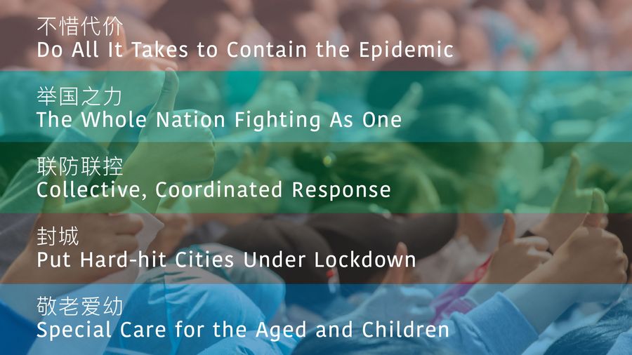 Mobilizando toda a na??o, a China lutou "uma guerra popular" contra o surto. Mais de 42 mil profissionais médicos de todo o país foram enviados para Hubei. Trabalhadores de todo o país correram para Wuhan para construir hospitais do zero. Recursos e suprimentos foram enviados de todas as partes.