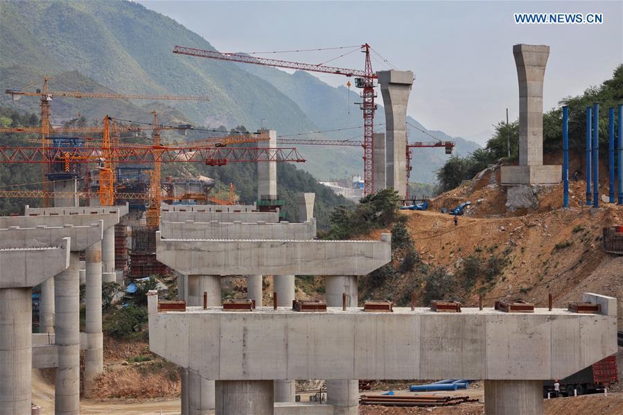 Foto tirada em 2 de maio de 2020 mostra o local da obra de uma grande ponte da via expressa Chongqing-Zunyi.