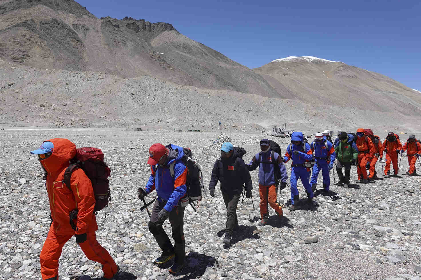 Equipe chinesa come?a trabalho de medi??o do cume do Monte Everest (4)
