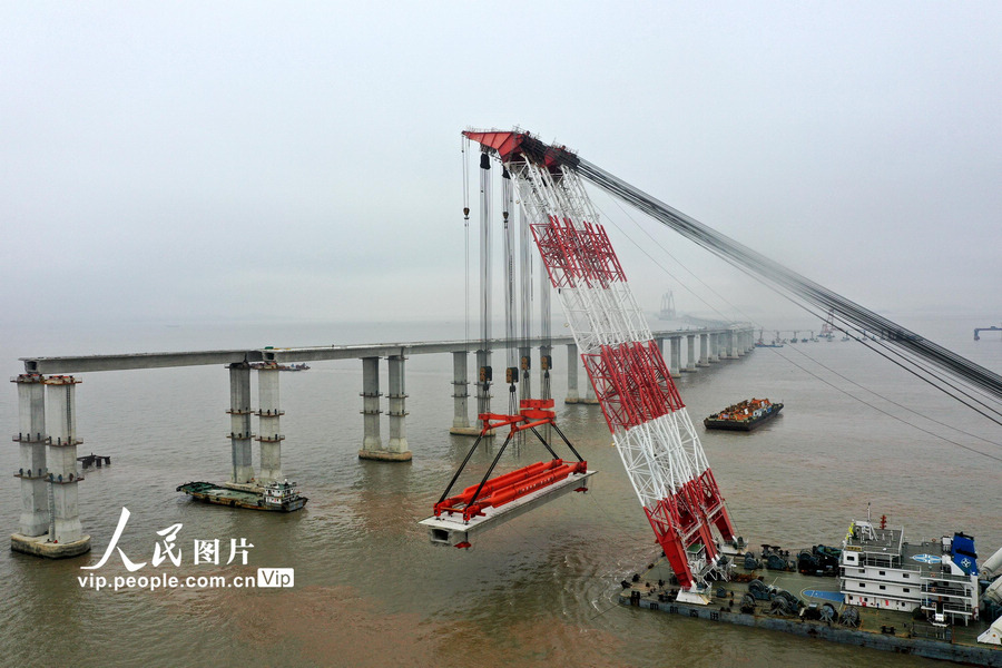 Na tarde de 6 de maio de 2020, a constru??o da ponte Zhoudai está em andamento.
