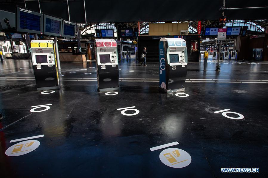 A esta??o ferroviária Gare du Nord colocou no ch?o marcas de distanciamento, dado que o país diminuirá gradualmente o confinamento a partir de 11 de maio.