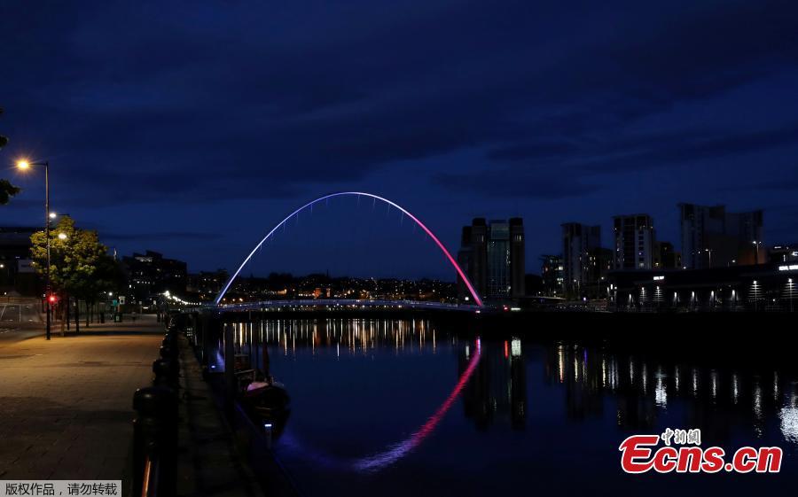 A Ponte Do Milénio De Gateshead é iluminada, na Gr?-Bretanha, 8 de maio de 2020.