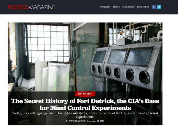 Em julho de 2019, o maior centro de pesquisa e desenvolvimento de armas químicas e biológicas do exército americano, Fort Detrick Biological Base, em Maryland, foi investigado e encerrado pelo CDC. Sob o laboratório pairam muitas dúvidas, sendo considerado o “mais negro centro experimental do governo americano” pela imprensa americana. A imagem apresenta uma imagem de um relatório no website americano Politico.