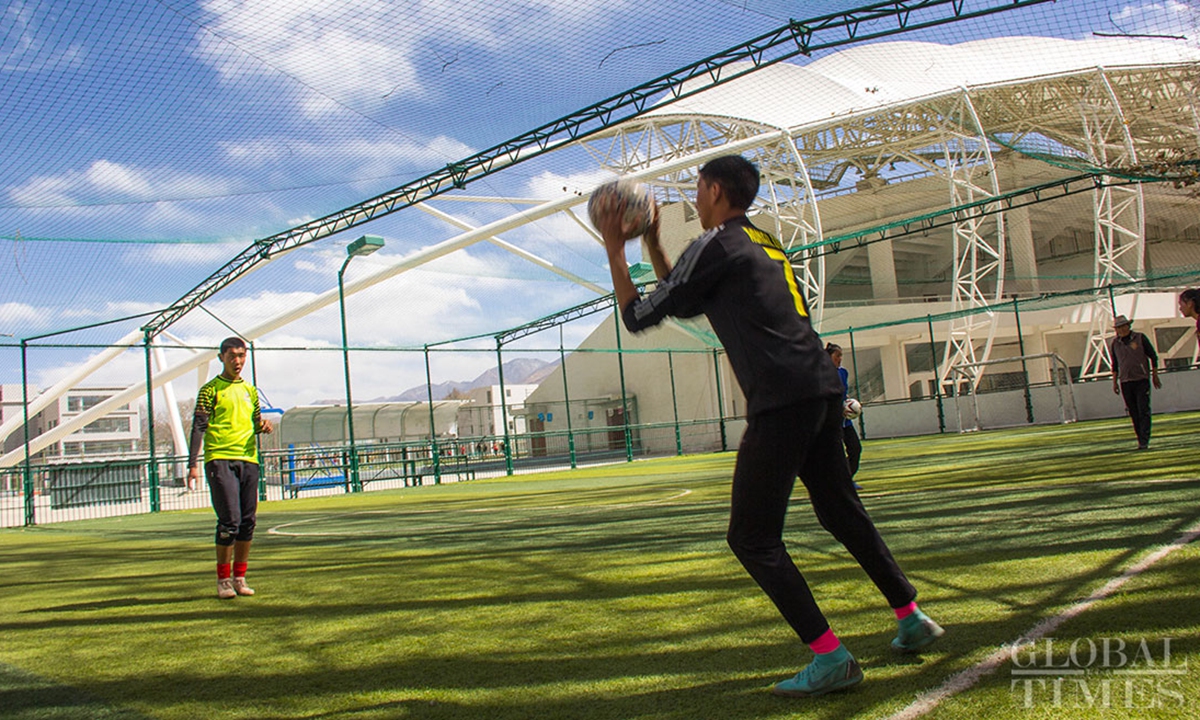 Jovens jogadores do Lhasa Chengtou Football Club treinam em Lhasa, Regi?o Aut?noma do Tibete no sudoeste da China em 2019. Foto: Shan Jie / GT
