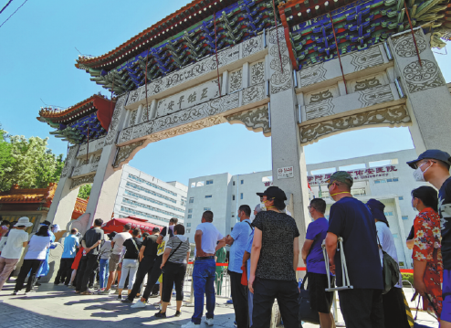 Pessoas fazem fila para realizar teste de ácido nucléico no domingo no Hospital Youan de Beijing, a alguns quil?metros do mercado de Xinfadi, ligado ao mais recente surto de Covid-19. Foto: Chen Hao / China Daily