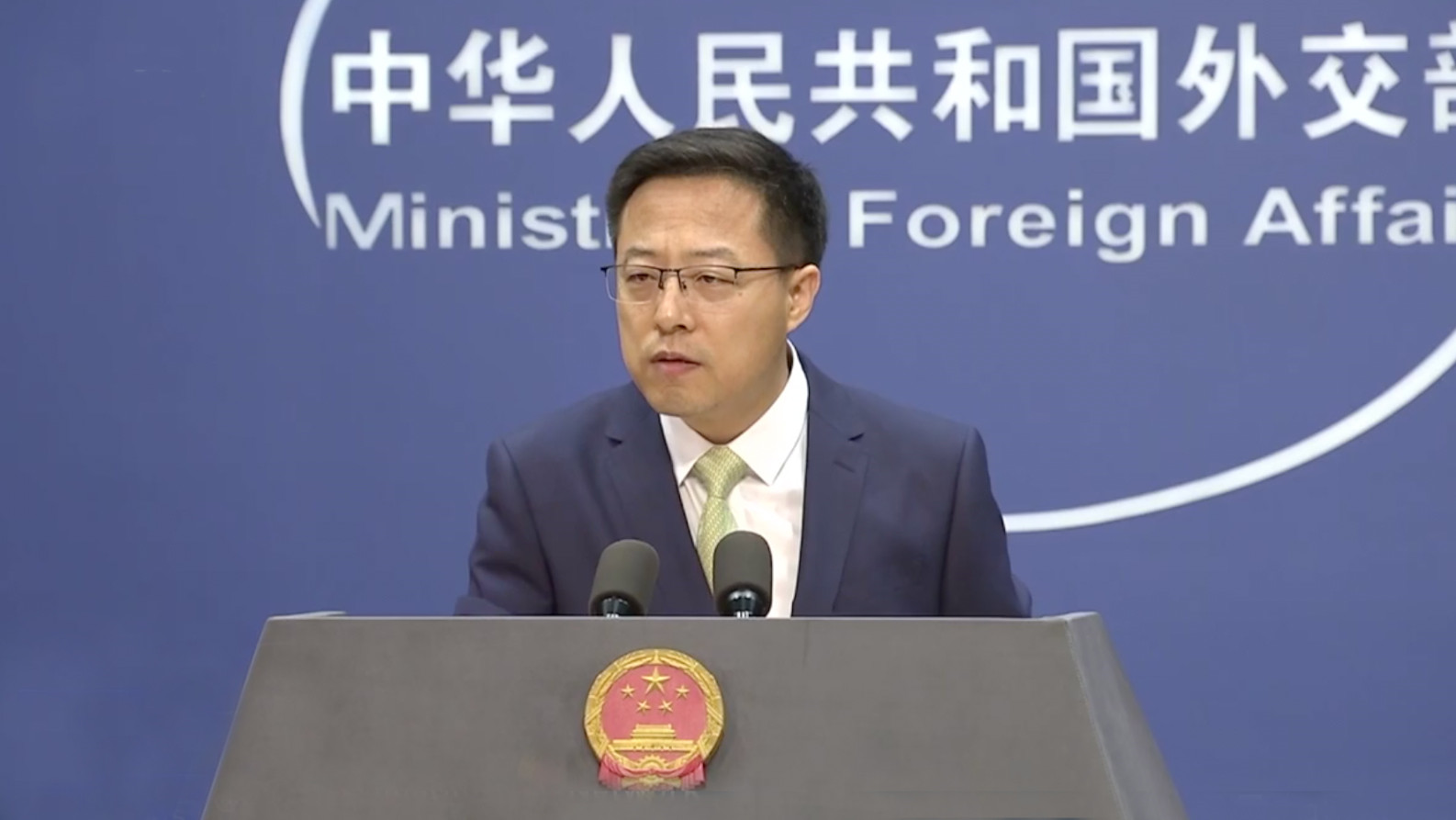 Indagado sobre as recentes reportagens sobre as 40 vítimas chinesas no conflito, Zhao disse serem "notícias falsas".
