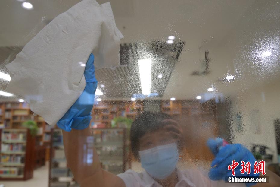 Funcionários de biblioteca pública de Beijing desinfetam e esterilizam regularmente para prevenir e controlar a epidemia (2)