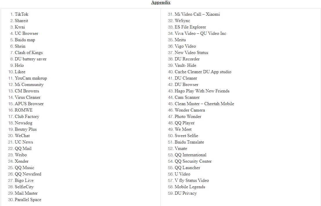 à medida que as tens?es aumentam com a China, a índia baniu abruptamente 59 aplicativos chineses, incluindo o TikTok, QQ Mail e UC Browser, alegando que s?o “prejudiciais para a soberania e integridade da índia, defesa da índia, seguran?a do estado e da ordem pública”, segundo o Ministério das Tecnologias da Informa??o indiano.