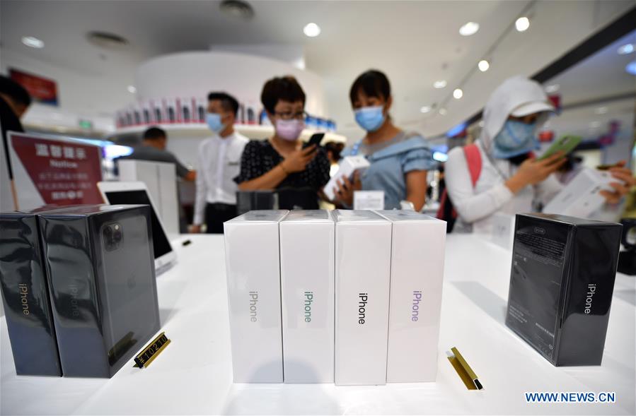 Os clientes compram produtos eletr?nicos em uma loja duty-free de um shopping center em Haikou, província de Hainan, no sul da China, em 1o de julho de 2020. [Foto / Xinhua]