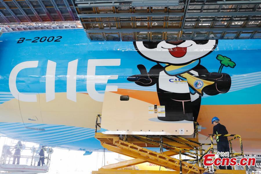 Avi?o temático da CIIE é apresentado no aeroporto de Hongqiao (2)