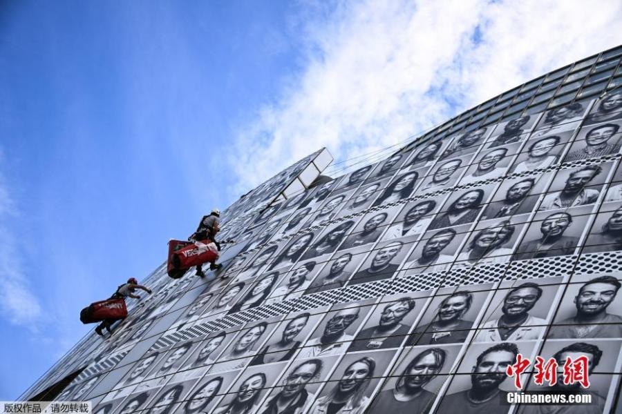 Retratos dos profissionais de saúde s?o instalados para prestar homenagem à equipe médica em Paris (2)