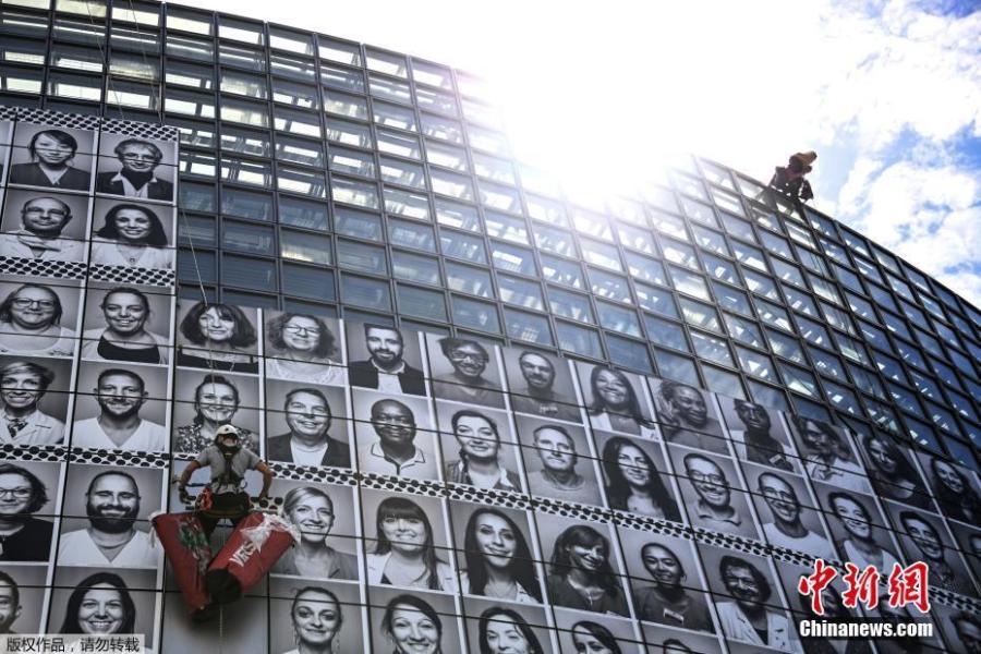 Retratos dos profissionais de saúde s?o instalados para prestar homenagem à equipe médica em Paris (4)