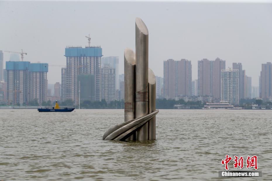 Em 11 de julho, na praia do rio Hankou, Wuhan, a água já submergiu a plataforma na beira-mar no segundo nível e está próxima da plataforma de terceiro nível - mais alto nível.