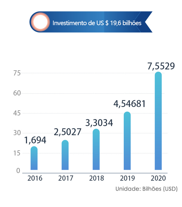 Em 2020, o investimento atingiu US $ 7,5529 bilh?es.