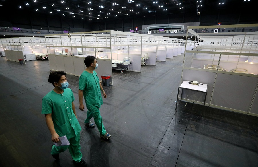 O primeiro hospital improvisado de Hong Kong, construído na AsiaWorld-Expo com assistência de especialistas do continente, come?ou a operar no sábado como um centro de triagem para pacientes. No domingo, 31 pacientes haviam sido enviados para lá.