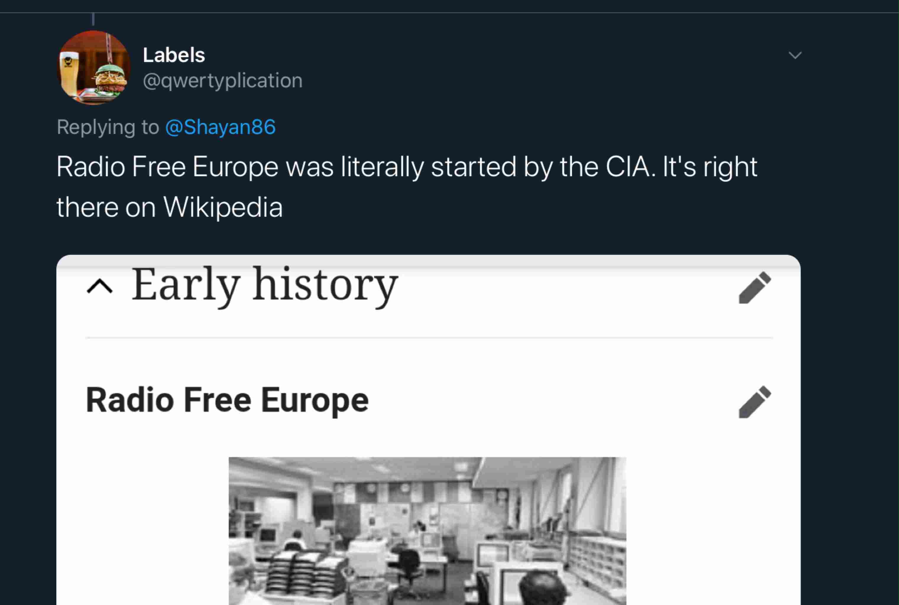 A decis?o do Twitter gerou um intenso debate e polêmica online. O usuário do Twitter “Labels” observou em sua postagem que a “Radio Free Europe foi literalmente fundada pela CIA, como é que ela n?o está na lista?”.