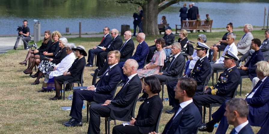 O rei Willem-Alexander depositou uma coroa de flores durante a cerim?nia, que n?o foi pública devido às novas medidas do coronavírus. Em seu discurso, Rutte enfatizou que as experiências de pessoas que passaram pela Segunda Guerra Mundial nas índias Orientais Holandesas precisam ser contadas, embora muitos tenham sido informados após sua chegada na Holanda que sua história de guerra era secundária ao que aconteceu na Holanda durante a Segunda Guerra Mundial.