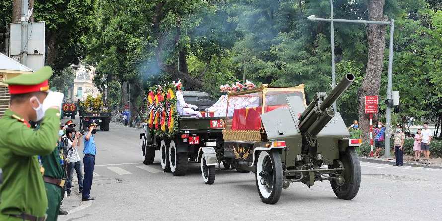 As cerim?nias fúnebres no Sal?o Nacional Funerário em Hanói contaram com a presen?a de líderes e ex-líderes do partido, estado e governo do Vietn?, incluindo o primeiro-ministro vietnamita, Nguyen Xuan Phuc, e o legislador, Nguyen Thi Kim Ngan, informou a Agência de Notícias do Vietn?.
