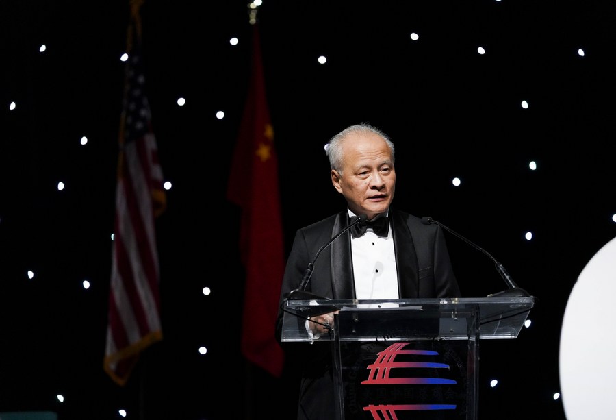 Cui Tiankai, embaixador chinês nos Estados Unidos, discursa no 15o aniversário e gala do Ano Novo Lunar chinês da Camara Geral de Comércio China-EUA em Nova York, Estados Unidos, em 8 de janeiro de 2020. (Xinhua/Wang Ying)