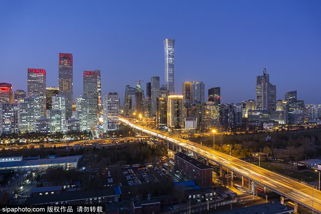 Paisagem noturna da zona comercial central no centro de Beijing, capital da China.